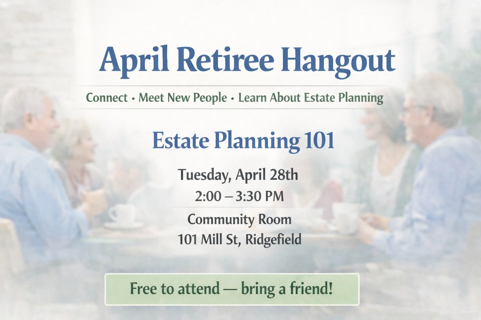 Please join us on the 28th for an educational event on estate planning led by Sara Winter and Nicholas Rogers of Gevurtz Menashe.